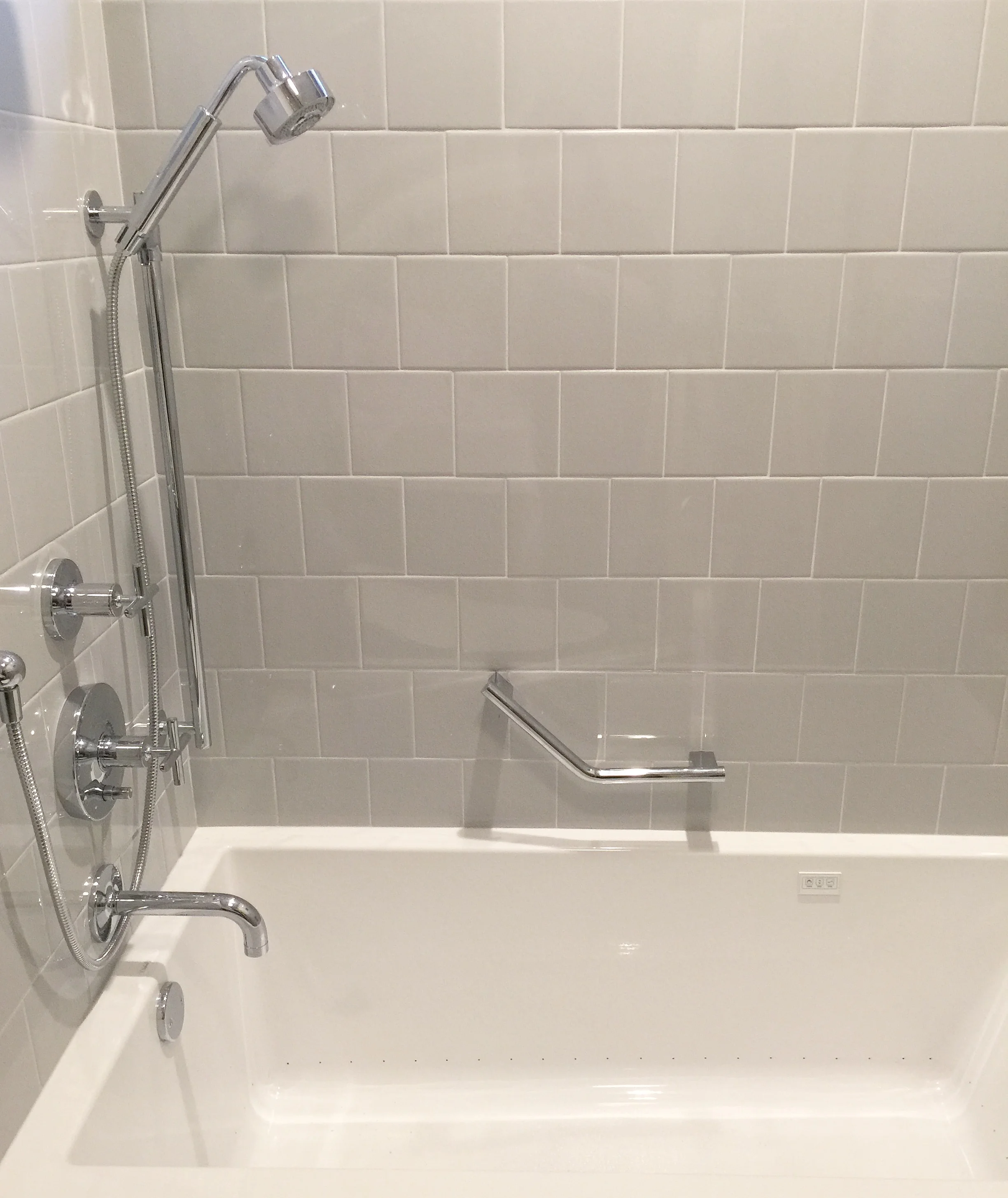 Brick Pattern Subway Tile Shower - Standard subway tiles are 3″x6″ (these appear to be about 3″x12″) so adjusting that ratio freshens the classic install a bit.